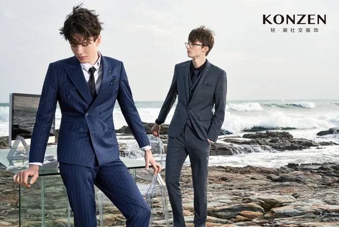 以年轻、潮流、时尚的设计风格为格调,通过精细的立体化修身剪裁、独特的面料工艺以及创新的设计理念,精准把握年轻职场精英男士对“年轻、潮流、舒适”的着装需求。演绎年轻职场精英男士阳光、帅气、自信、干练的独特气质,诠释KONZEN•空间轻潮社交的定位理念。