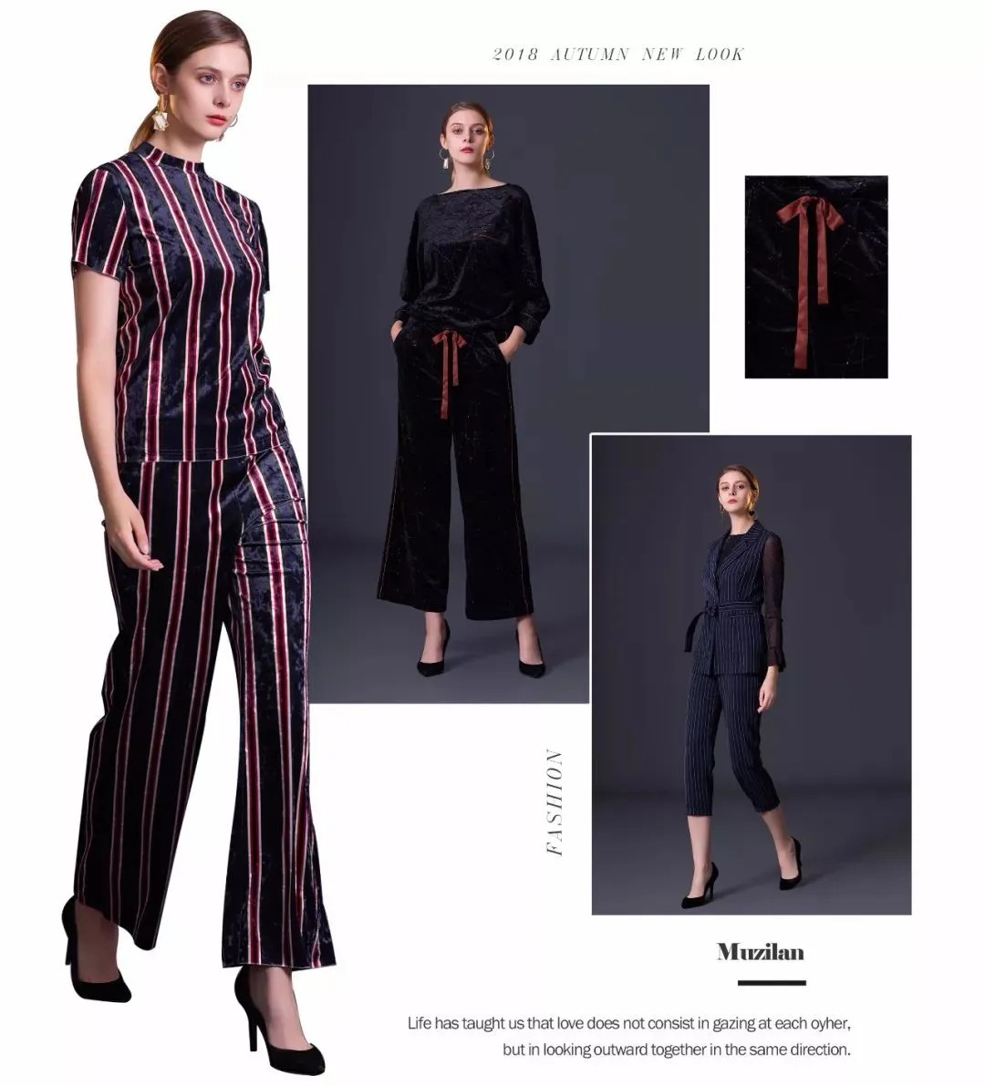 品牌理念:Muzilan追求时尚、精致与实用美学的完美平衡,通过对国际流行趋势与女装市场的严谨研究,整合国际、国内尖端时尚资源,融汇贯通,倾心专注,精彩演绎现代成熟都市女性的自信、高雅、柔美、智慧、女人味。