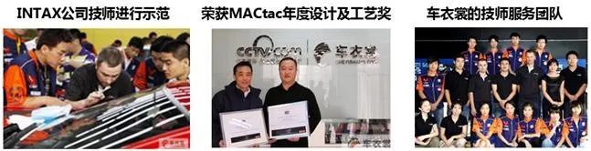 德国INTAX公司的车身膜工艺是国内外公认的专职施工品,INTAX是德国政府机构、联邦军队、汽车厂商外观颜色供应商,2008年车衣裳获得INTAX中国创新推出技术授权经销。